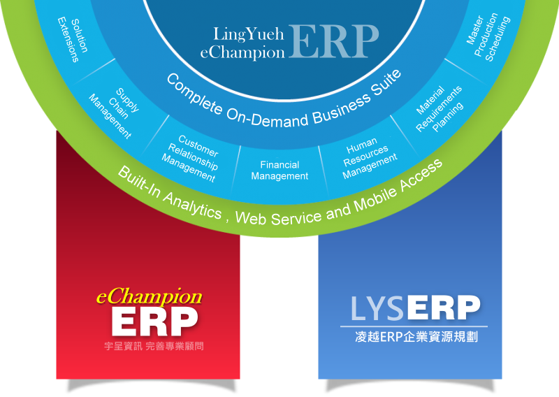 符合大型企業集團ERP應用需求,以企業體系財務管理面為主軸,依循企業交易八大循環,整合生產管理、配銷管理、財務會計管理、應收付管理、維修保固,以卓越的全方位ERP管理角度,協助企業再進化,扶植企業締造高效能ERP競爭力。 |